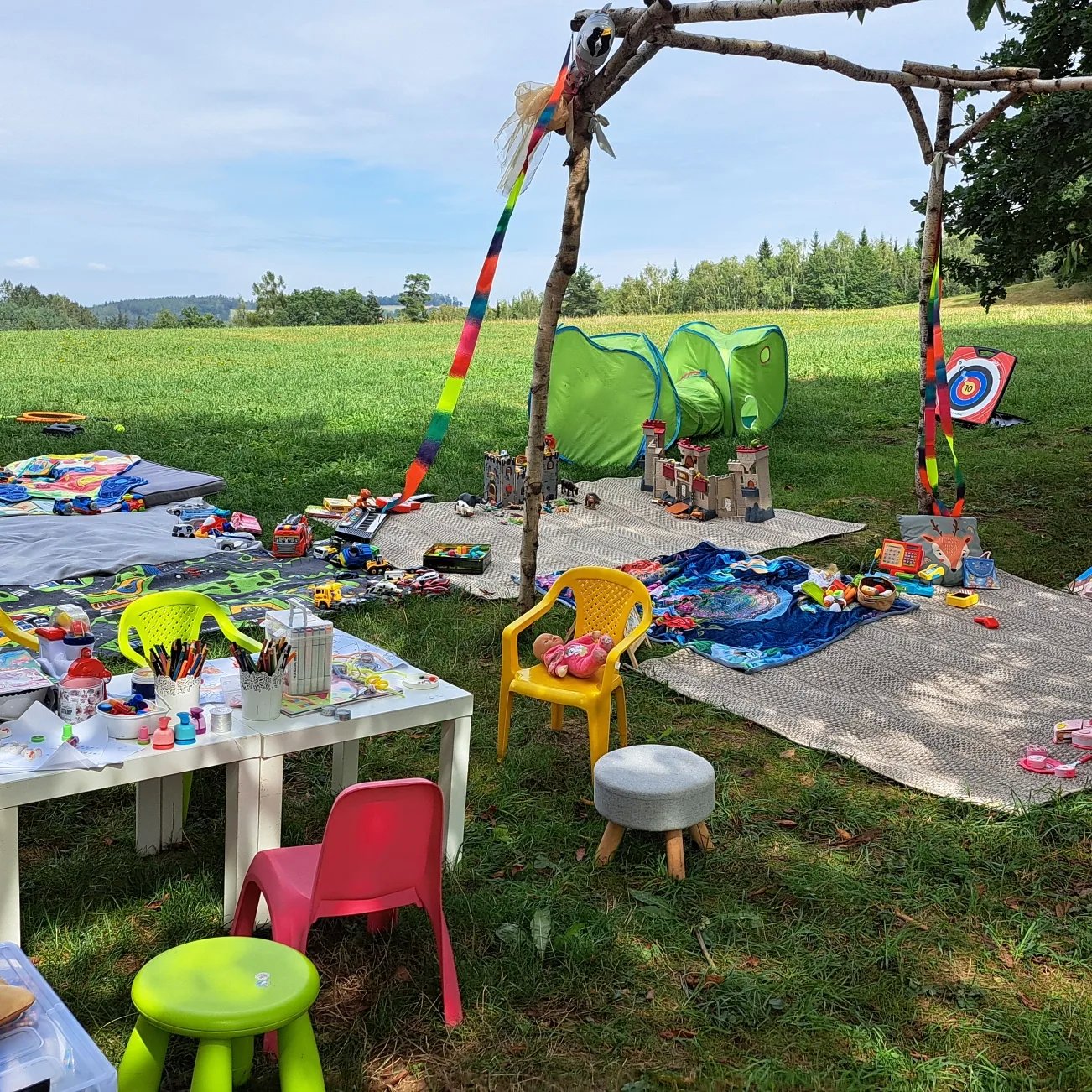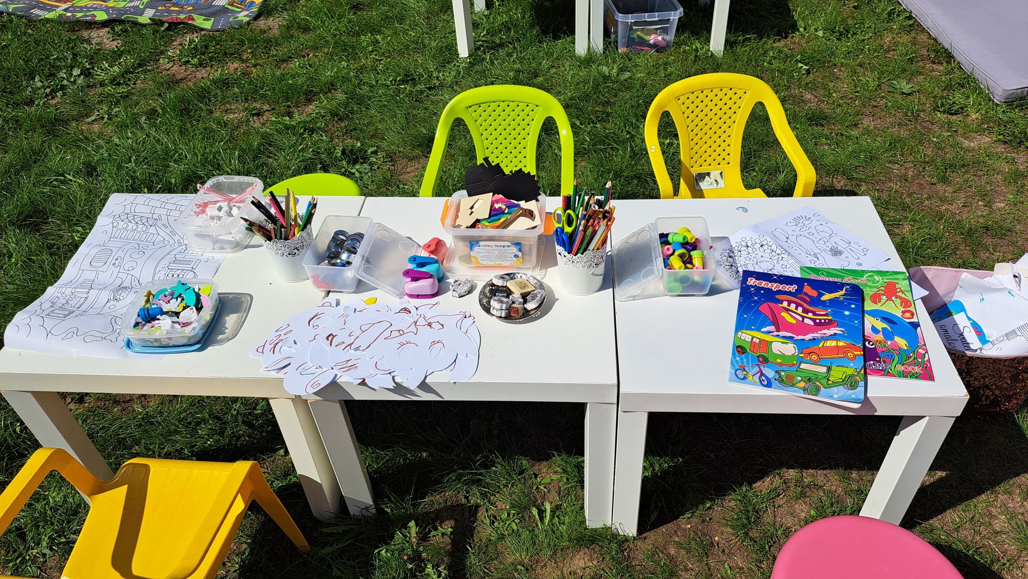 • Pomůcky pro tvoření: pastelky, omalovánky, korálky, nálepky, tetovačky, síť na vytvořené obrázky