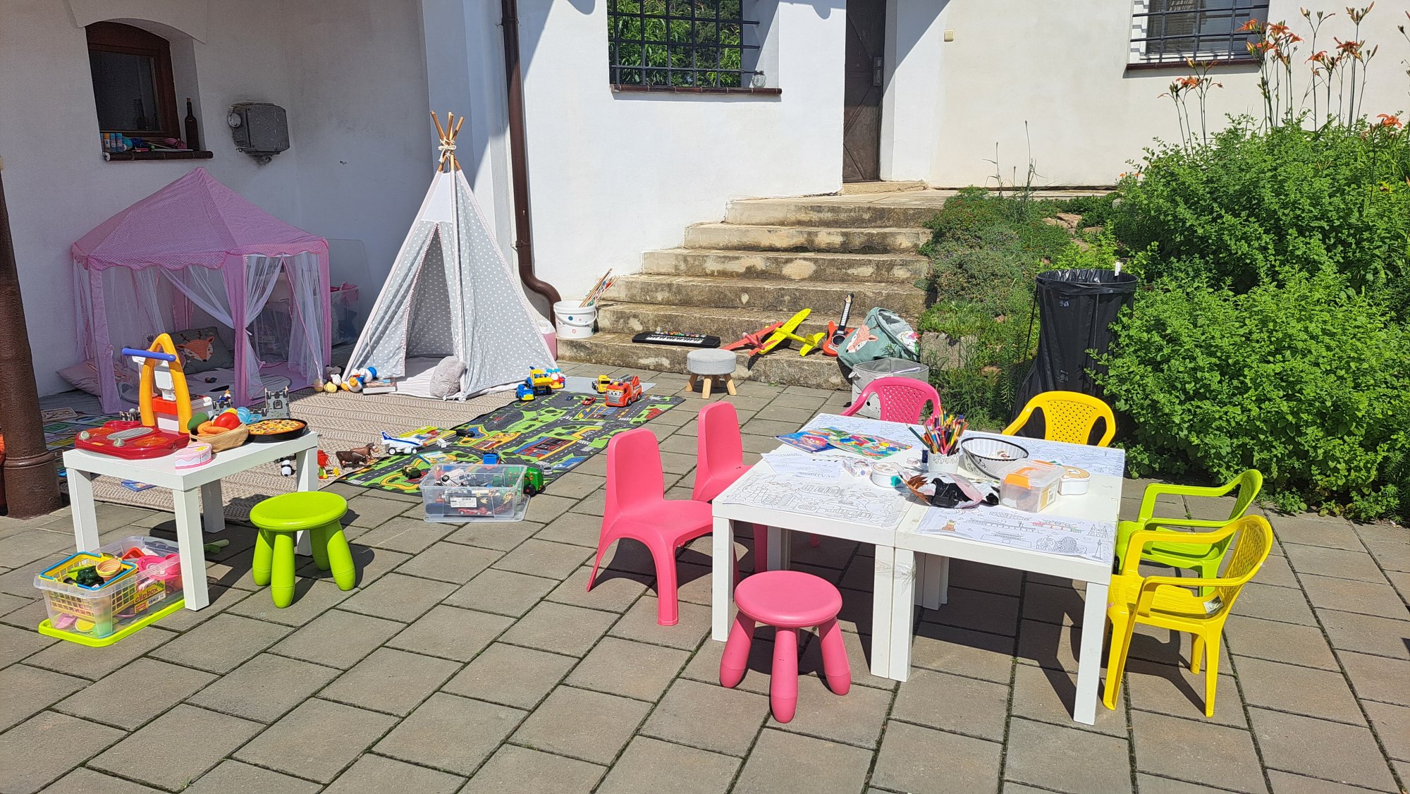 • Na venkovní aktivity míče, bazének, badminton a další.