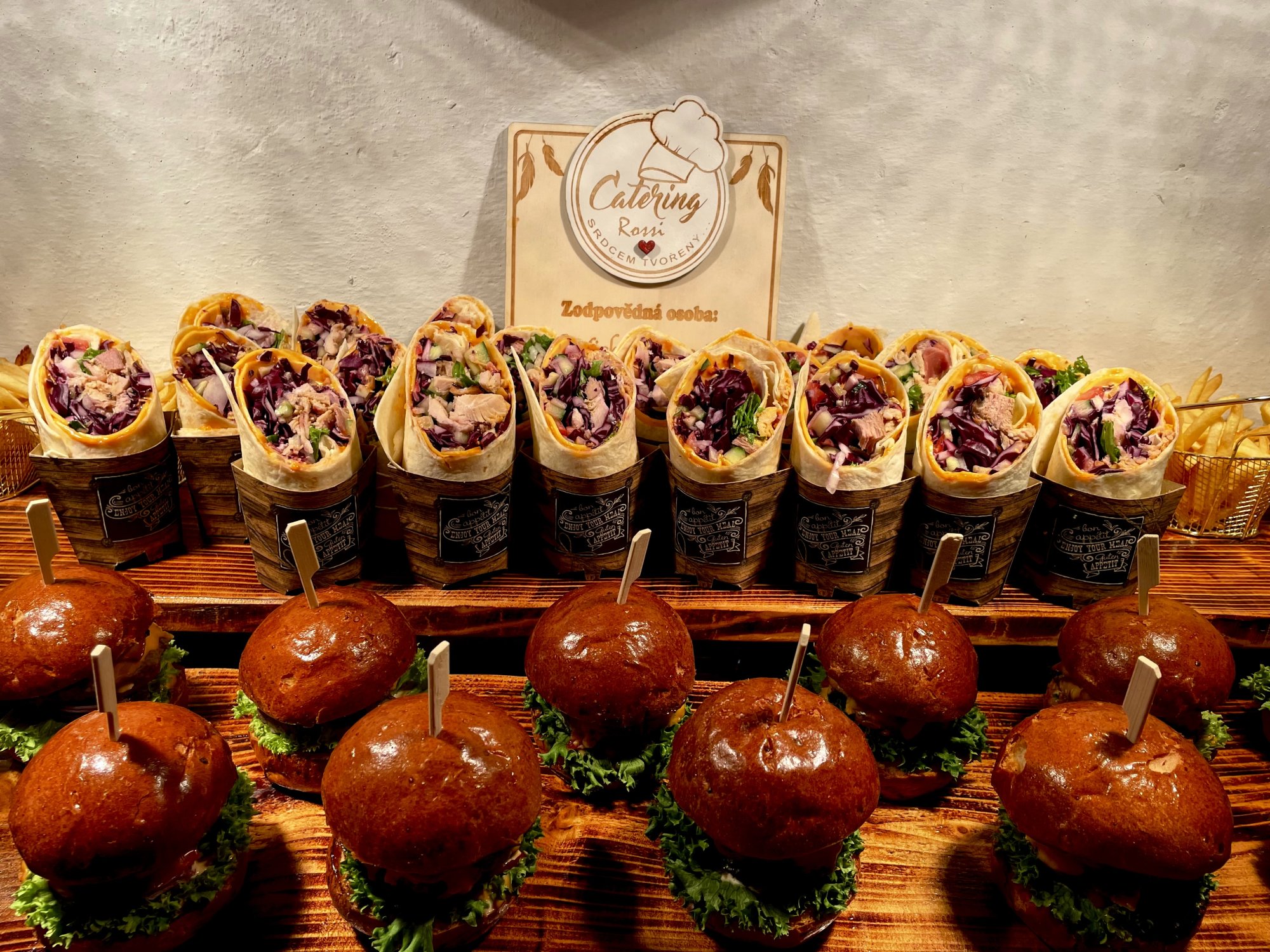 Jsme catering, který svou práci odvádí zodpovědně a se srdíčkem. Přesně tak, jak si naše moravská duše říká. Neuvěřitelně nás tato práce baví a naplňuje. Je nám nesmírným potěšením být součástí Vašich oslav, ať už pro Vás připravujeme 10 chlebíčků nebo celou svatbu. Používáme kvalitní a čerstvé suroviny, ze kterých připravujeme moderní i tradiční kuchyni. Působíme na svatbách, narozeninových oslavách, firemních akcích, apod. Postaráme se o to, aby Vaše oslava byla dokonalá a nezapomenutelná ve spolupráci s Cateringem Rossi.