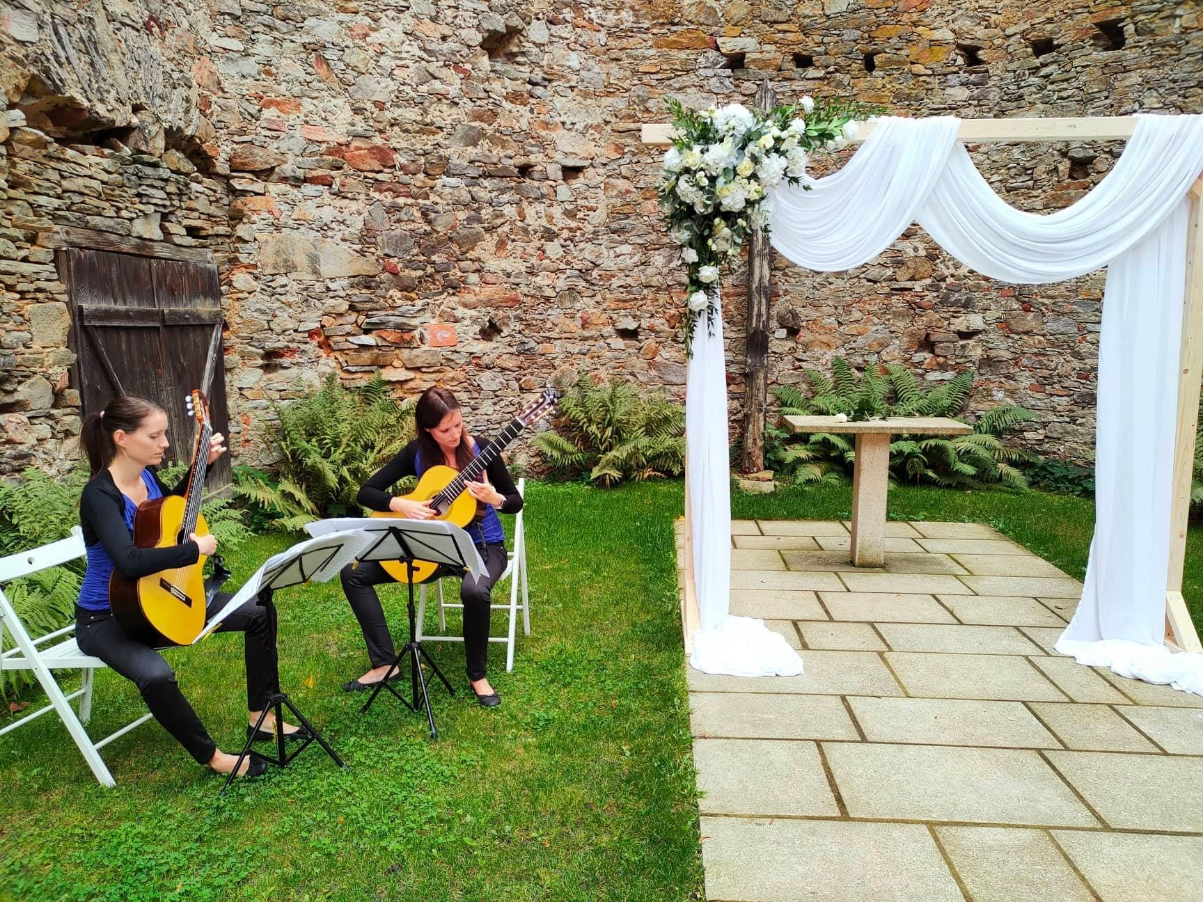 Naše kytarové duo je skvělou volbou pro každou nevěstu, která chce, aby její svatební den byl opravdu výjimečný. Kytara je nástroj s jemným zvukem, který je plný něhy a emocí. Dokáže vytvořit intimní atmosféru, proto je pro svatební obřad ideální volbou. Jsme navíc skvěle sehrané, protože jsme dvojčata a hrajeme spolu od malička. To nám umožňuje vytvořit dokonalou harmonii, která bude znít jako z pohádky.