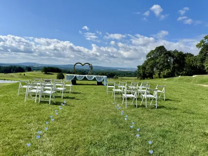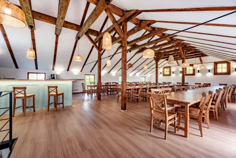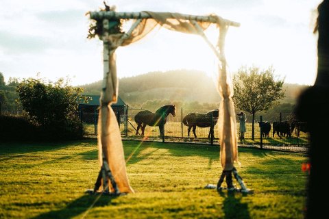 Vyslovte nejdůležitější slovo svého života na molu u rybníka s výhledem na okolní zalesněné kopce, nebo se vezměte bosky na louce obklopeni vzrostlými stromy. Romantice pod širým nebem se u nás meze nekladou. Nebo byste raději zimní intimní svatbu za zvuku praskajícího dříví v krbu? Osobní nebo okázalá svatba, uvnitř nebo pod širým nebem, areál celého našeho statku je vám exkluzivně k dispozici pro to, aby se vaše sny a představy staly skutečností.