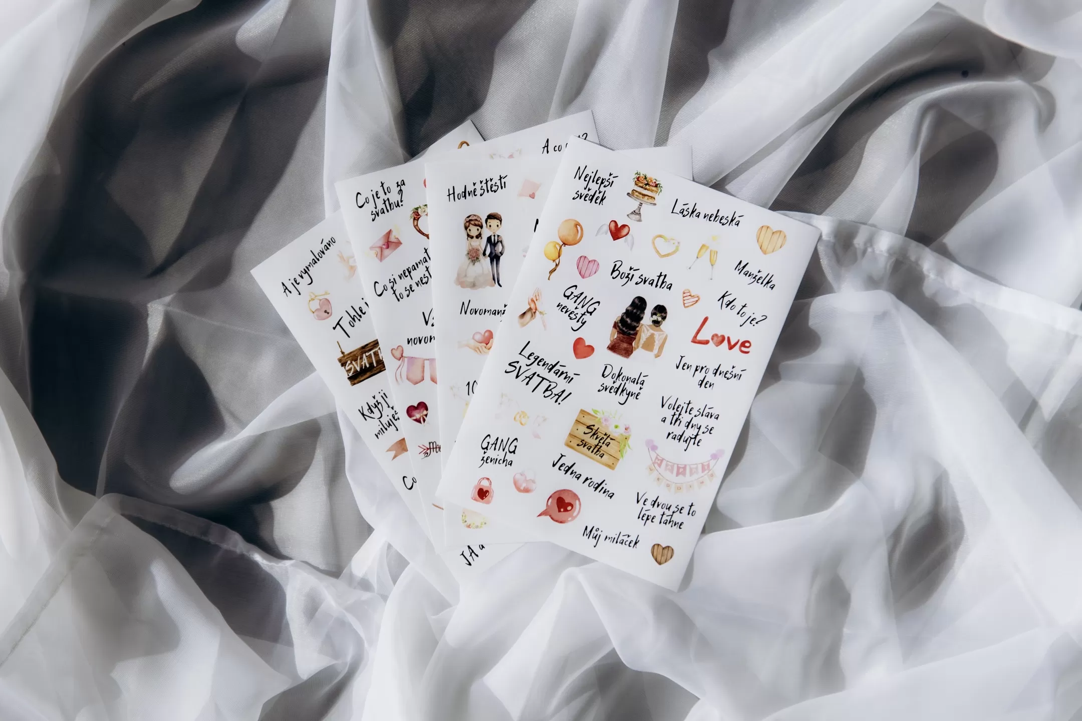 Sada svatebních samolepek, která oživí a dovede k dokonalosti nejen vaši knihu hostů. 👌 Využijete je také ve fotokoutku, nebo třeba v radách do manželství. Fantazii se meze nekladou. 🥳