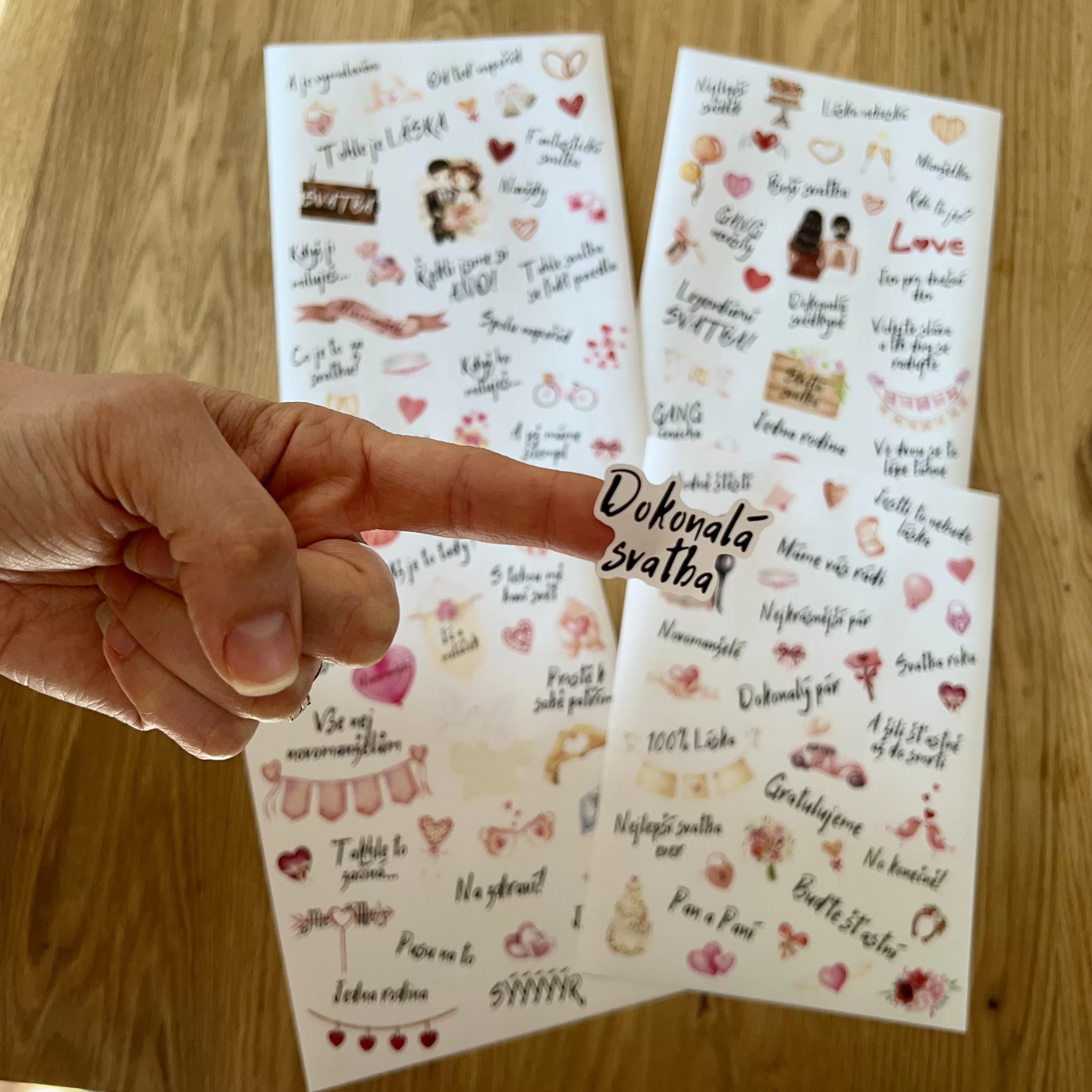 Sada obsahuje 4 archy velikosti A5. Dostatek samolepek ,aby s nimi hosté nemuseli šetřit a dali průchod své kreativitě. 🥳