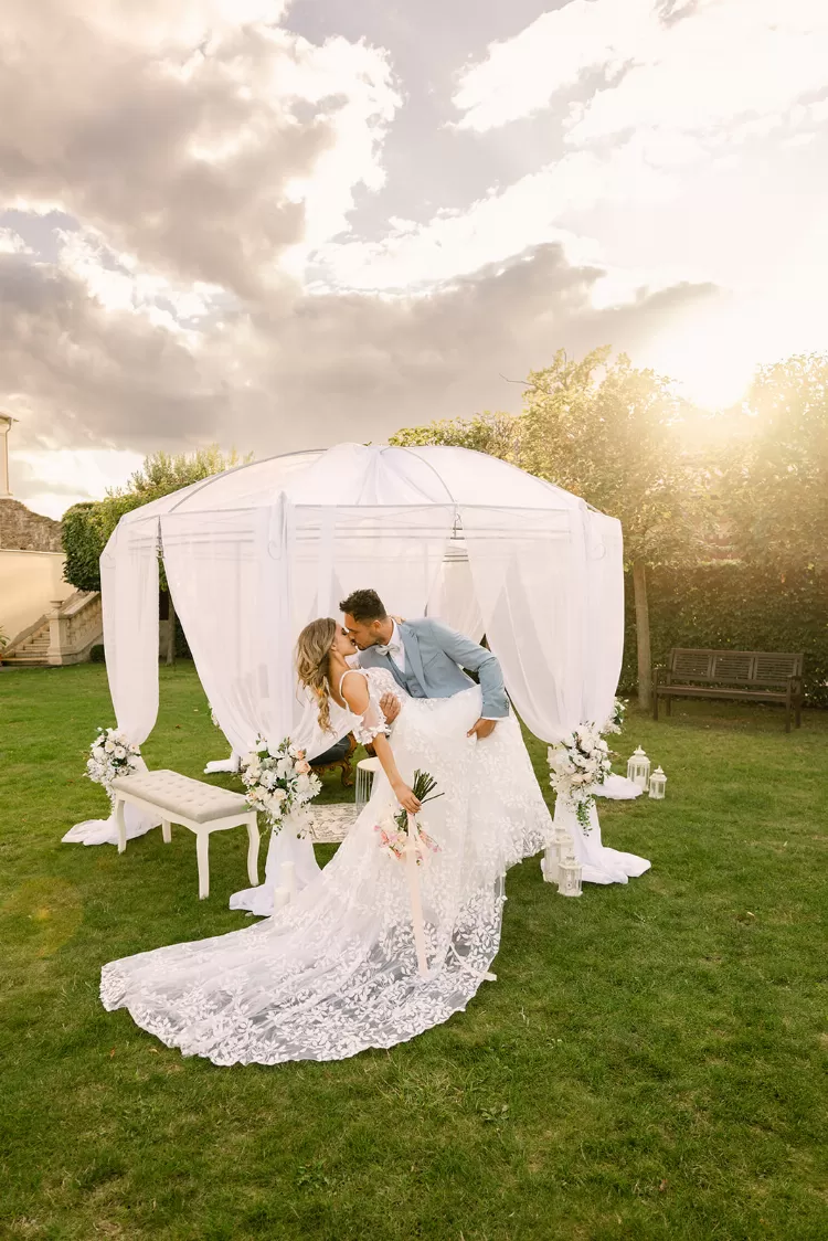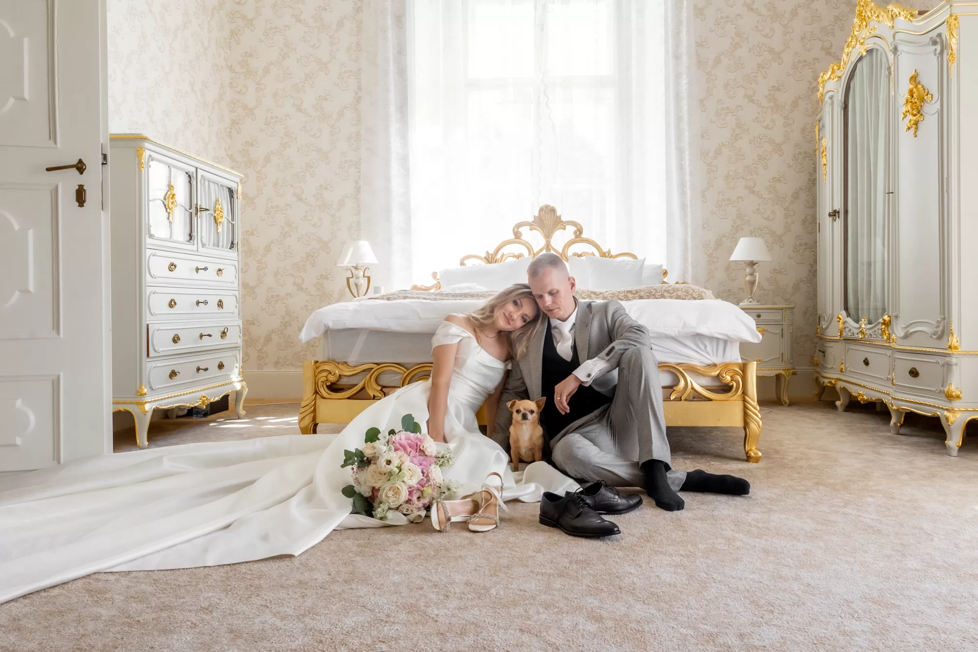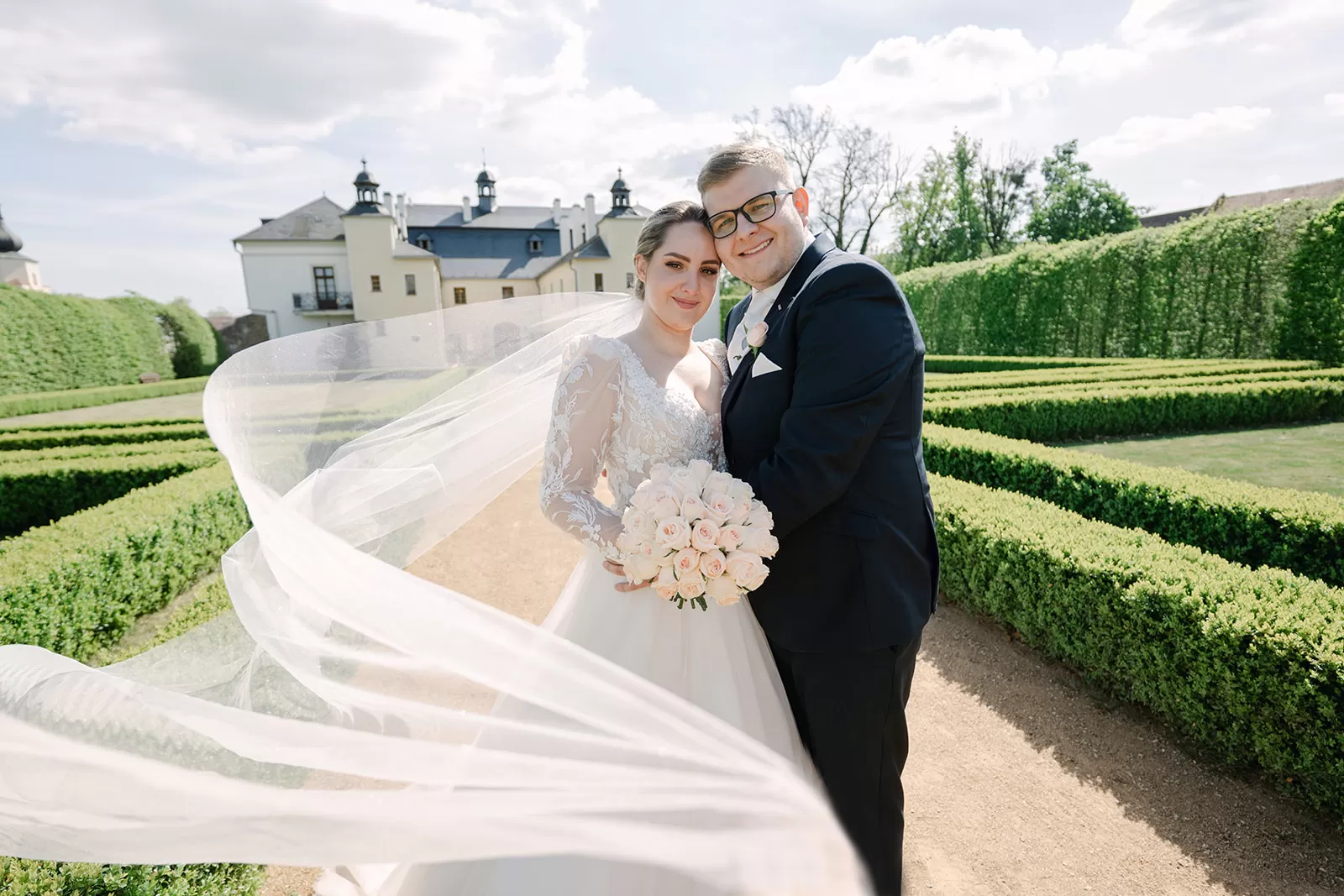 Naši novomanželé mají možnost strávit nezapomenutelnou noc přímo v plně vybaveném zámeckém apartmá s balkonem a výhledem do francouzské zahrady. Každý apartmán má svůj jedinečný styl, ze kterého na Vás dýchne úžasná zámecká atmosféra.